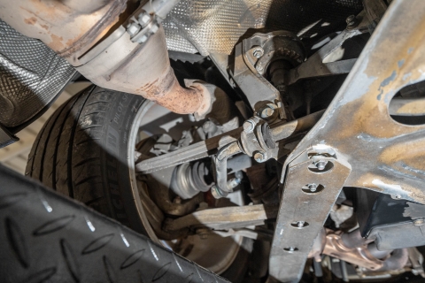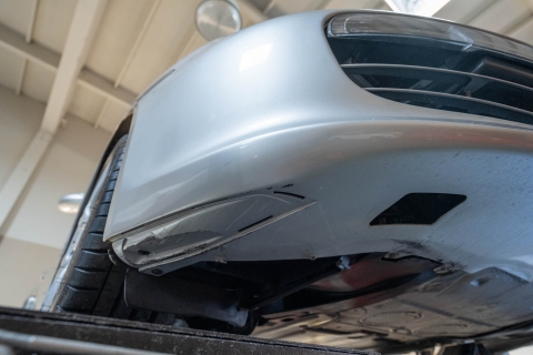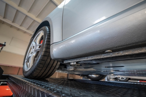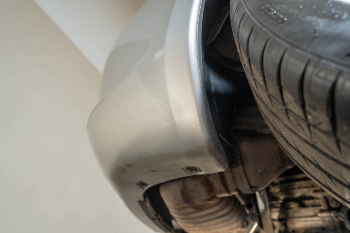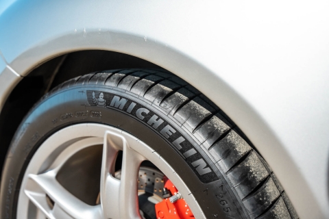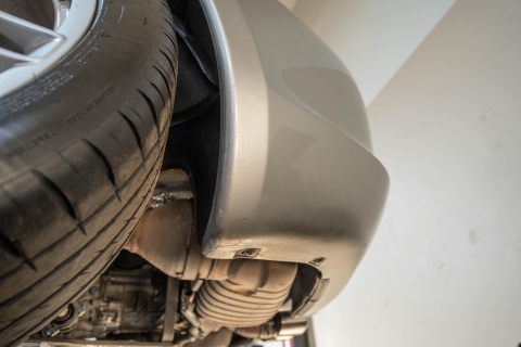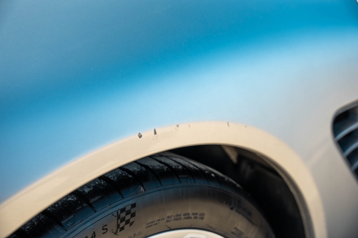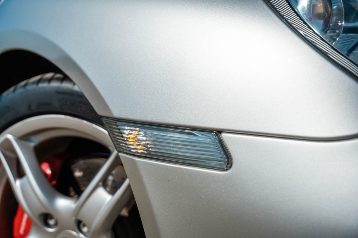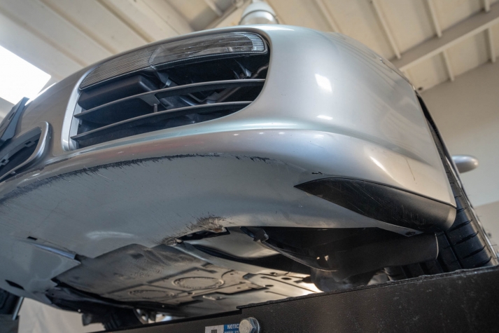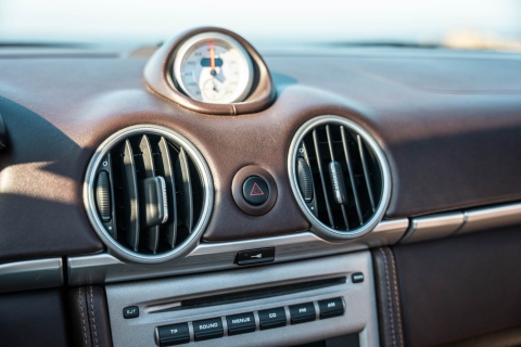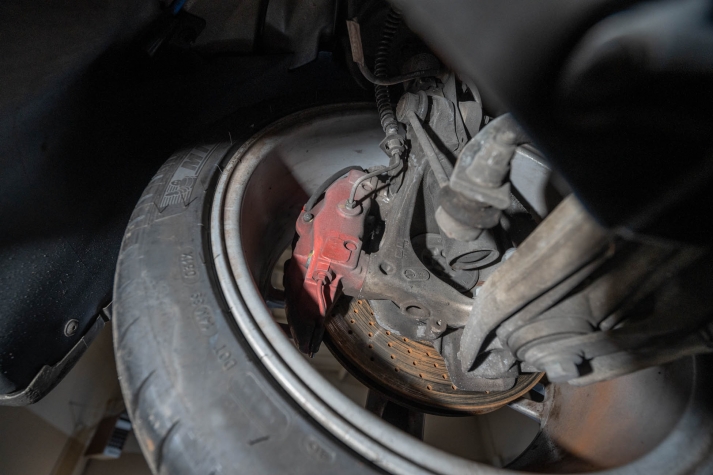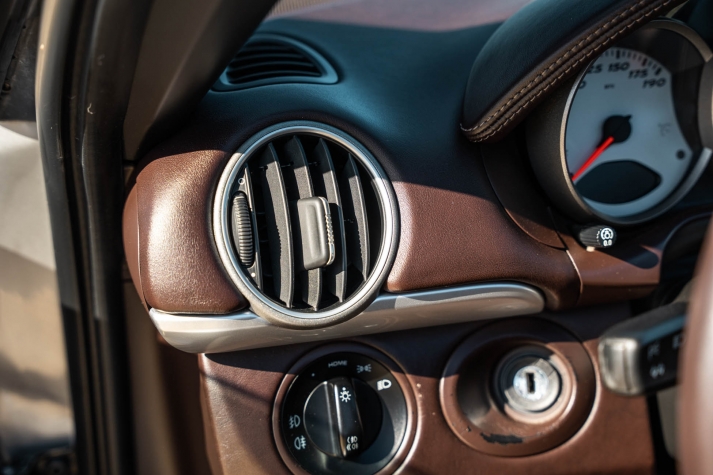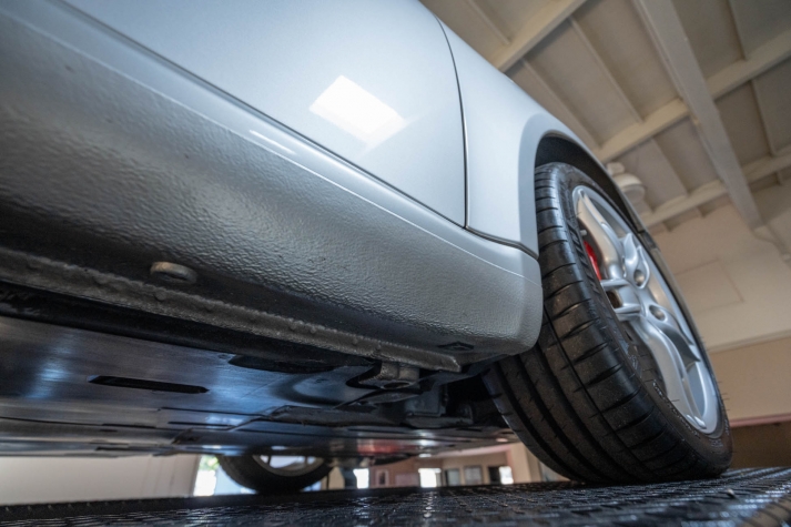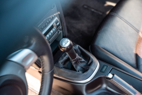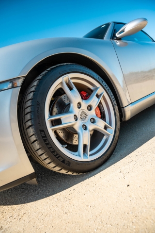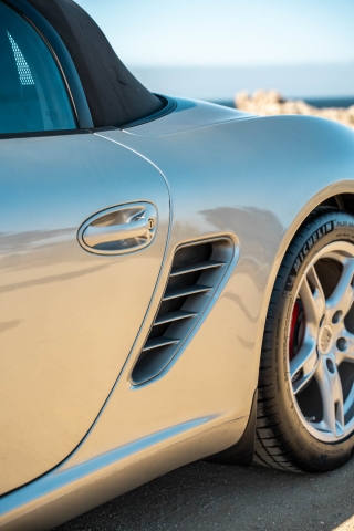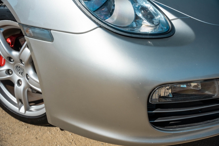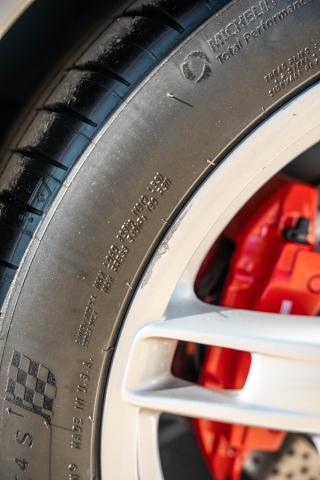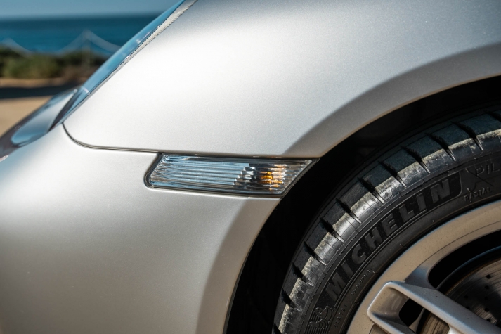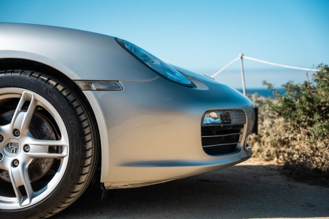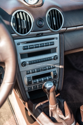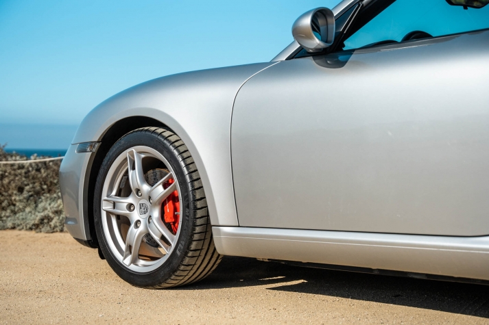 The 18? Boxster S wheels were mounted with Michelin Pilot Sport 4s tires in 2024, and they measure 235/40 up front and 265/40 out back. The car is equipped with Porsche Active Suspension Management (PASM) and Porsche Stability Management, and braking is handled by four-piston Porsche-branded calipers over cross-drilled rotors measuring 12.5? and 11.8? front and rear, respectively. The brake fluid was changed in 2024.