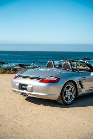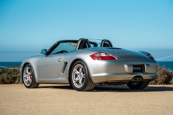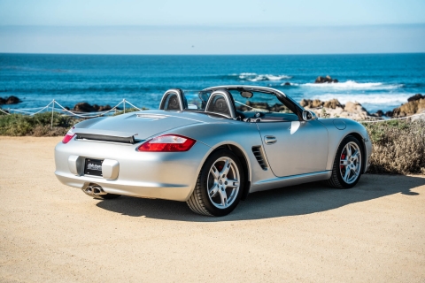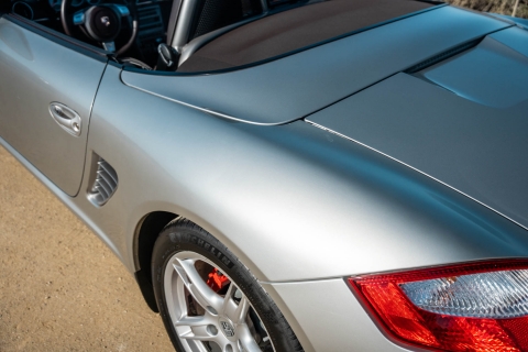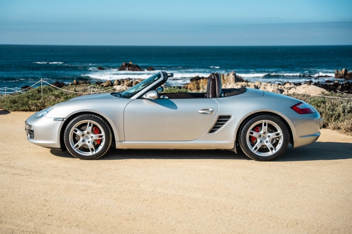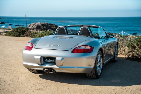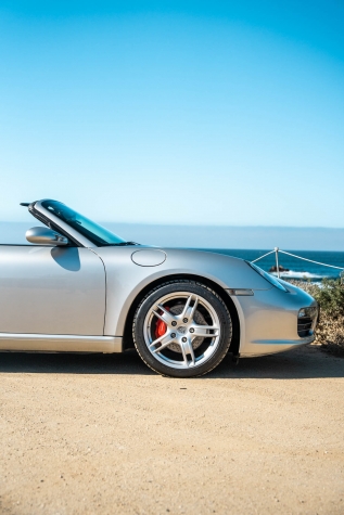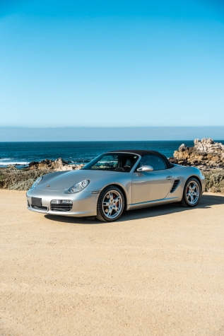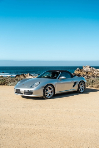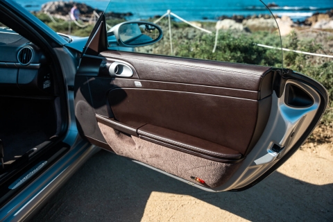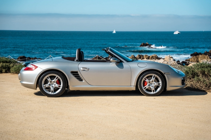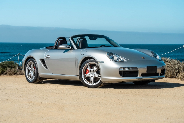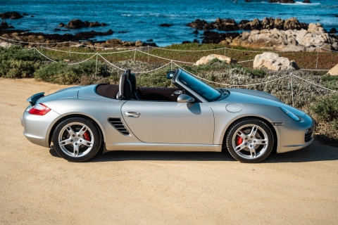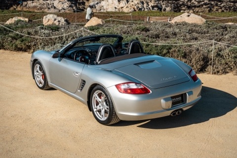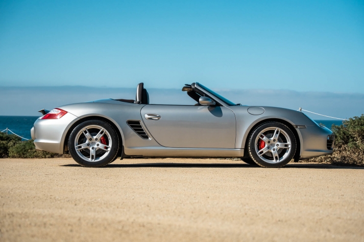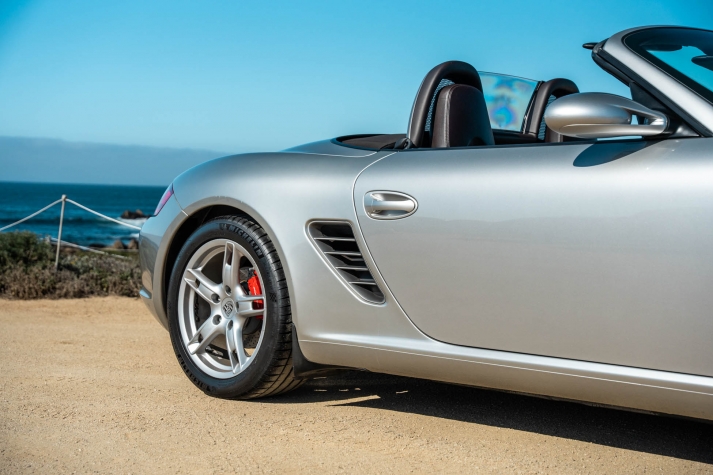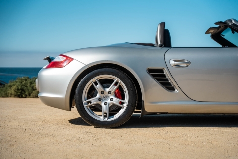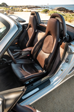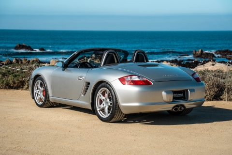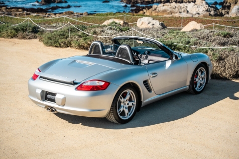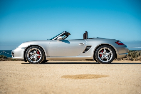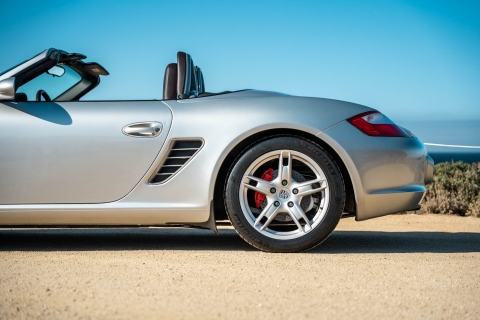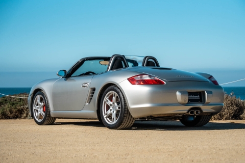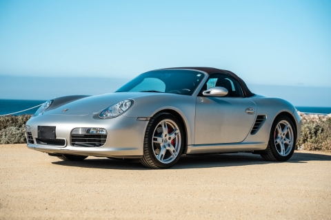 This 2007 Porsche Boxster S is powered by a 3.4-liter flat-six linked with a six-speed manual transaxle, and it is finished in Arctic Silver Metallic over Cocoa leather. Equipment includes a Cocoa soft top, 18? Boxster S wheels, a rear spoiler, heated seats, Porsche Active Suspension Management (PASM), the Sport Chrono Package, a 6-disc CD changer, and cruise control. The current owner purchased the car in 2017, and work in 2024 involved replacing the tires, water pump, spark plugs, ignition coils, and fluids. This 987.1 Boxster S has 40k miles and is now offered by the selling dealer, a BaT Local Partner, on consignment as part of Mohr Imports’ Pacific Porsche Collection at no reserve with the owner’s manual, service records, a clean Carfax report, and a clean California title.