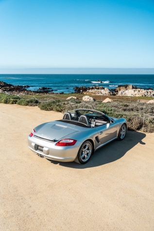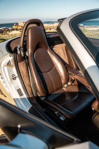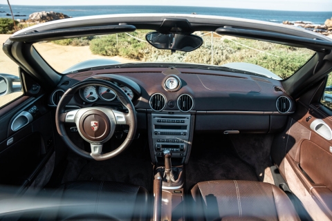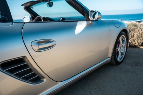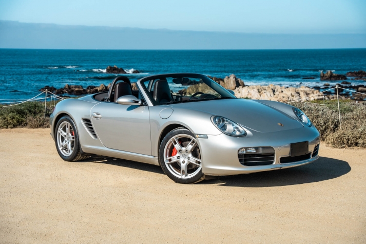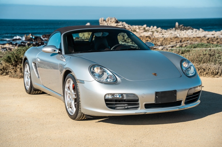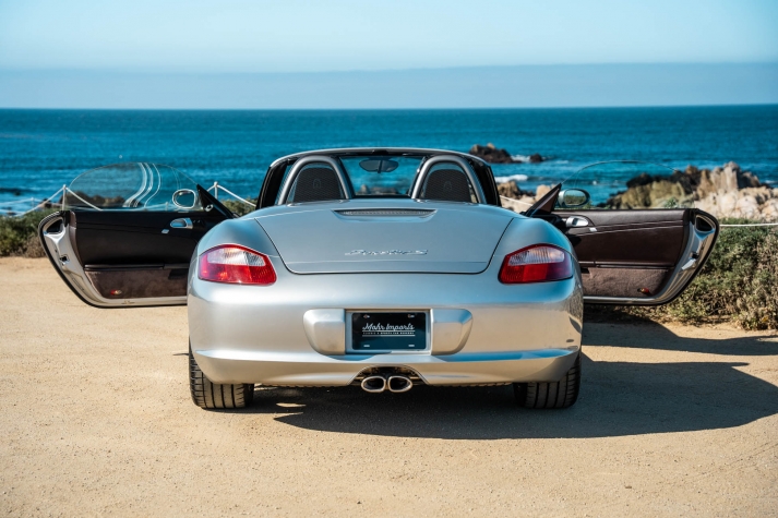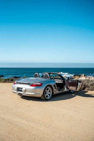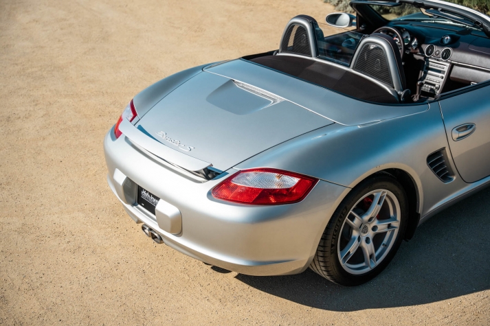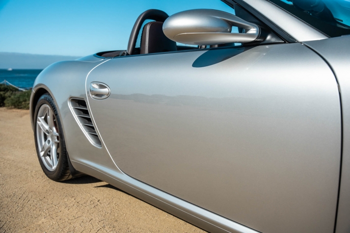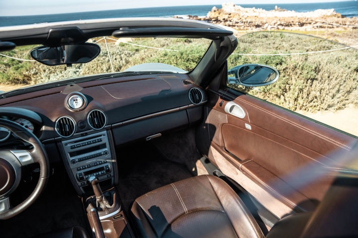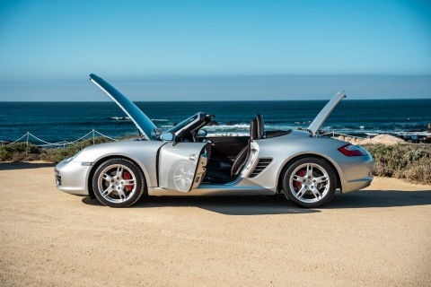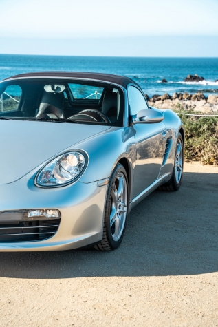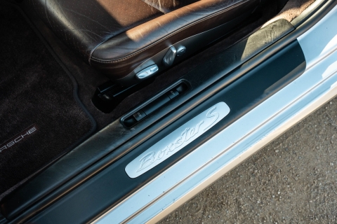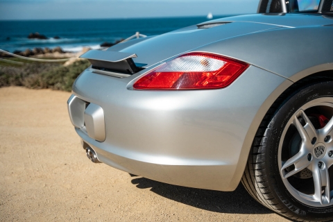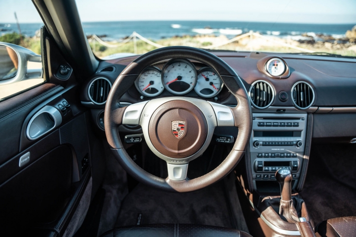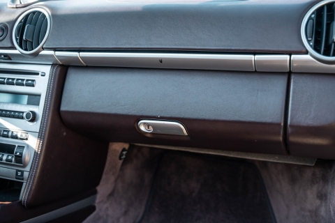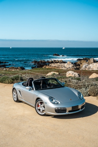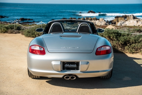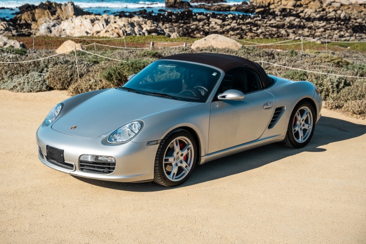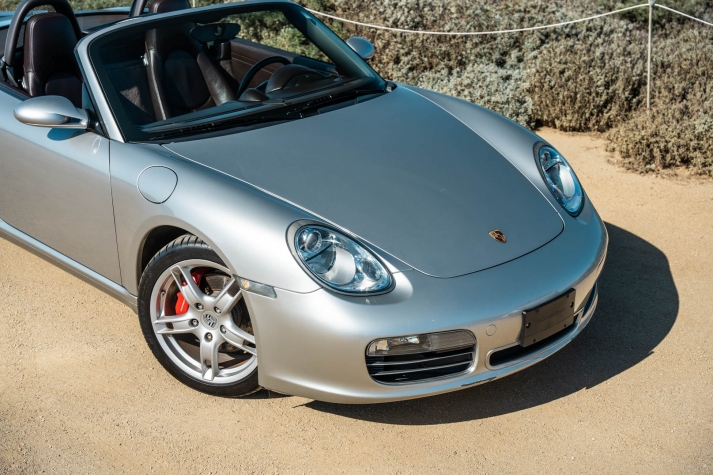 This 2007 Porsche Boxster S is powered by a 3.4-liter flat-six linked with a six-speed manual transaxle, and it is finished in Arctic Silver Metallic over Cocoa leather. Equipment includes a Cocoa soft top, 18? Boxster S wheels, a rear spoiler, heated seats, Porsche Active Suspension Management (PASM), the Sport Chrono Package, a 6-disc CD changer, and cruise control. The current owner purchased the car in 2017, and work in 2024 involved replacing the tires, water pump, spark plugs, ignition coils, and fluids. This 987.1 Boxster S has 40k miles and is now offered by the selling dealer, a BaT Local Partner, on consignment as part of Mohr Imports’ Pacific Porsche Collection at no reserve with the owner’s manual, service records, a clean Carfax report, and a clean California title.
