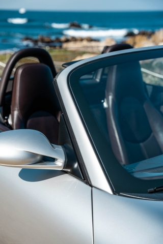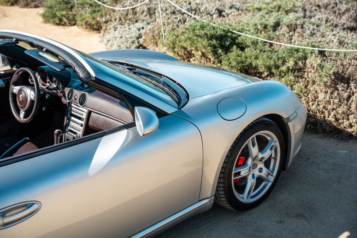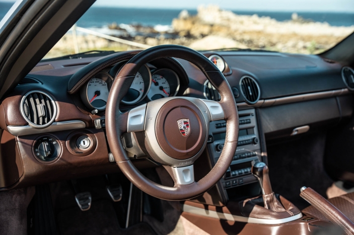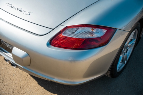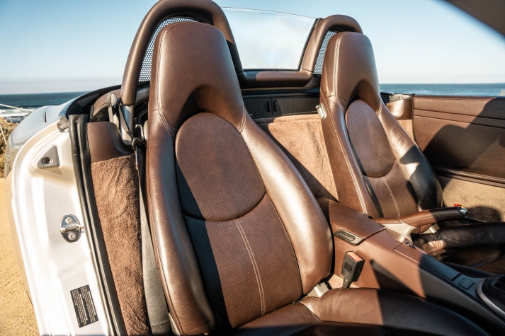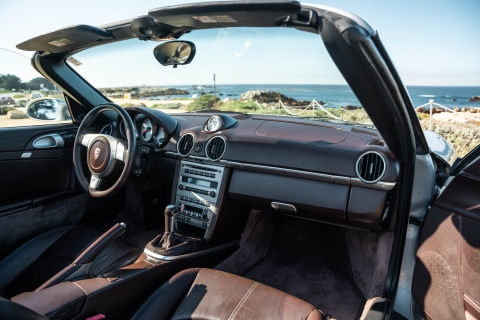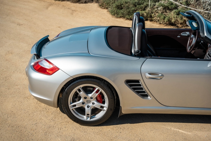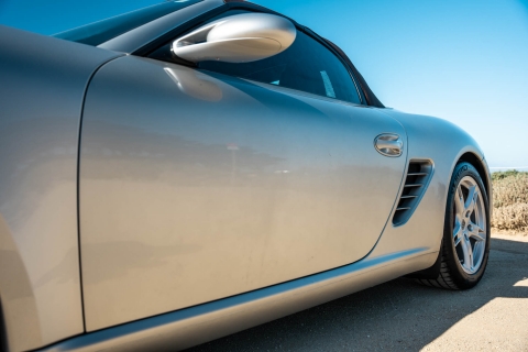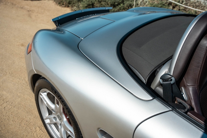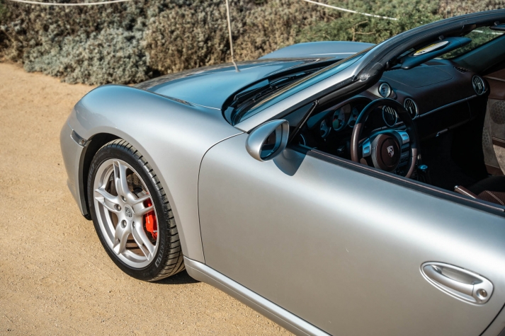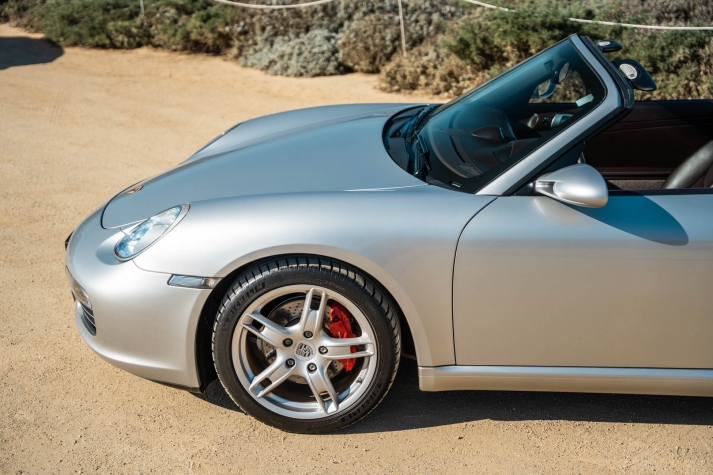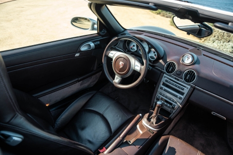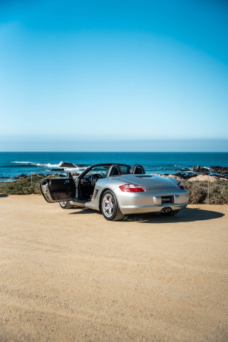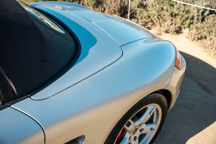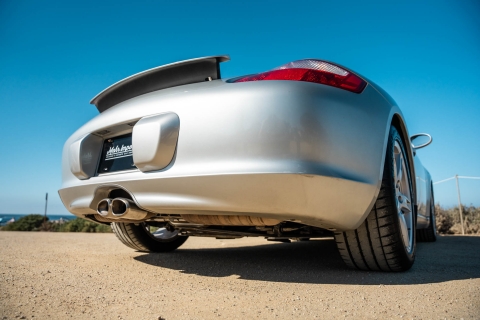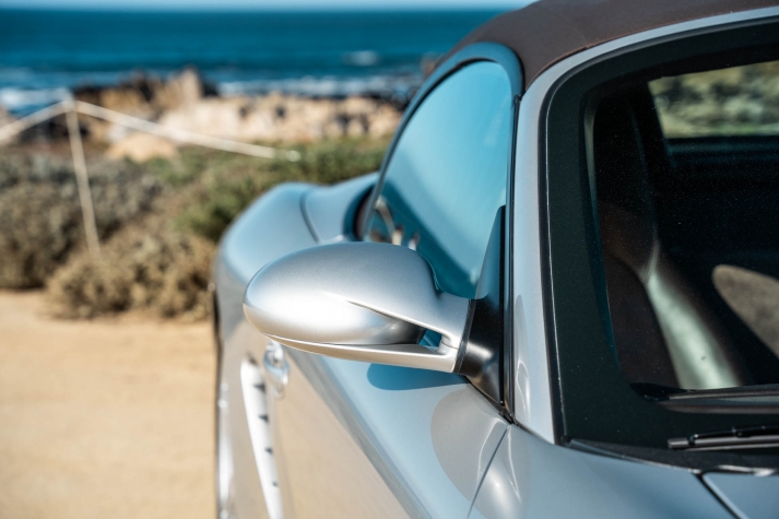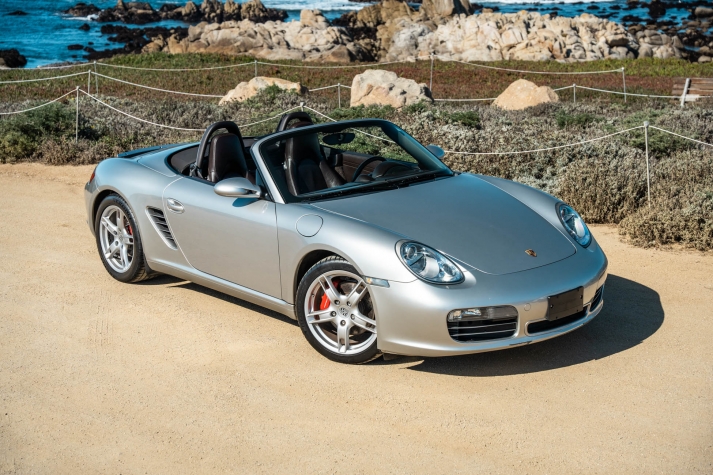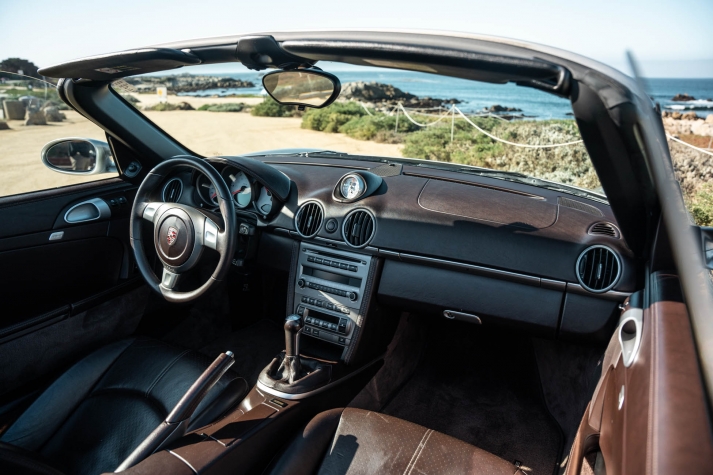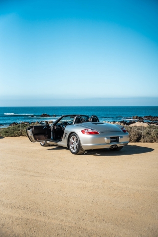 This 2007 Porsche Boxster S is powered by a 3.4-liter flat-six linked with a six-speed manual transaxle, and it is finished in Arctic Silver Metallic over Cocoa leather. Equipment includes a Cocoa soft top, 18? Boxster S wheels, a rear spoiler, heated seats, Porsche Active Suspension Management (PASM), the Sport Chrono Package, a 6-disc CD changer, and cruise control. The current owner purchased the car in 2017, and work in 2024 involved replacing the tires, water pump, spark plugs, ignition coils, and fluids. This 987.1 Boxster S has 40k miles and is now offered by the selling dealer, a BaT Local Partner, on consignment as part of Mohr Imports’ Pacific Porsche Collection at no reserve with the owner’s manual, service records, a clean Carfax report, and a clean California title.