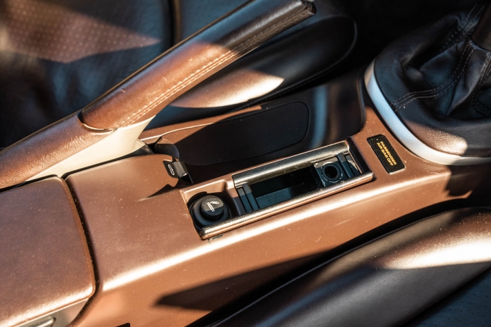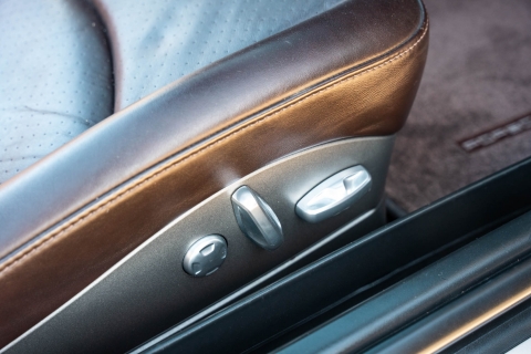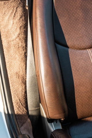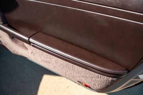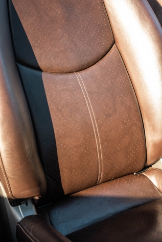 The cabin features seats upholstered in Cocoa leather along with a color-coordinated dashboard and carpets. Amenities include air conditioning, heated power-adjustable seats, a wind deflector, a 6-disc CD changer, and cruise control.