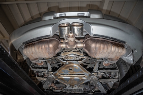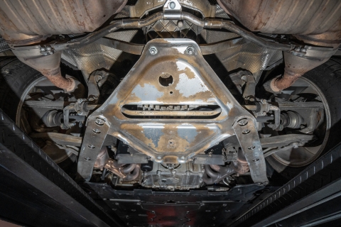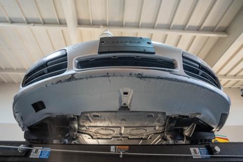 The mid-mounted 3.4-liter flat-six is located ahead of the rear cargo area and was factory rated at 295 horsepower and 251 lb-ft of torque. Work in 2024 involved an oil change and replacement of the water pump, spark plugs, ignition coils, and drive belt.